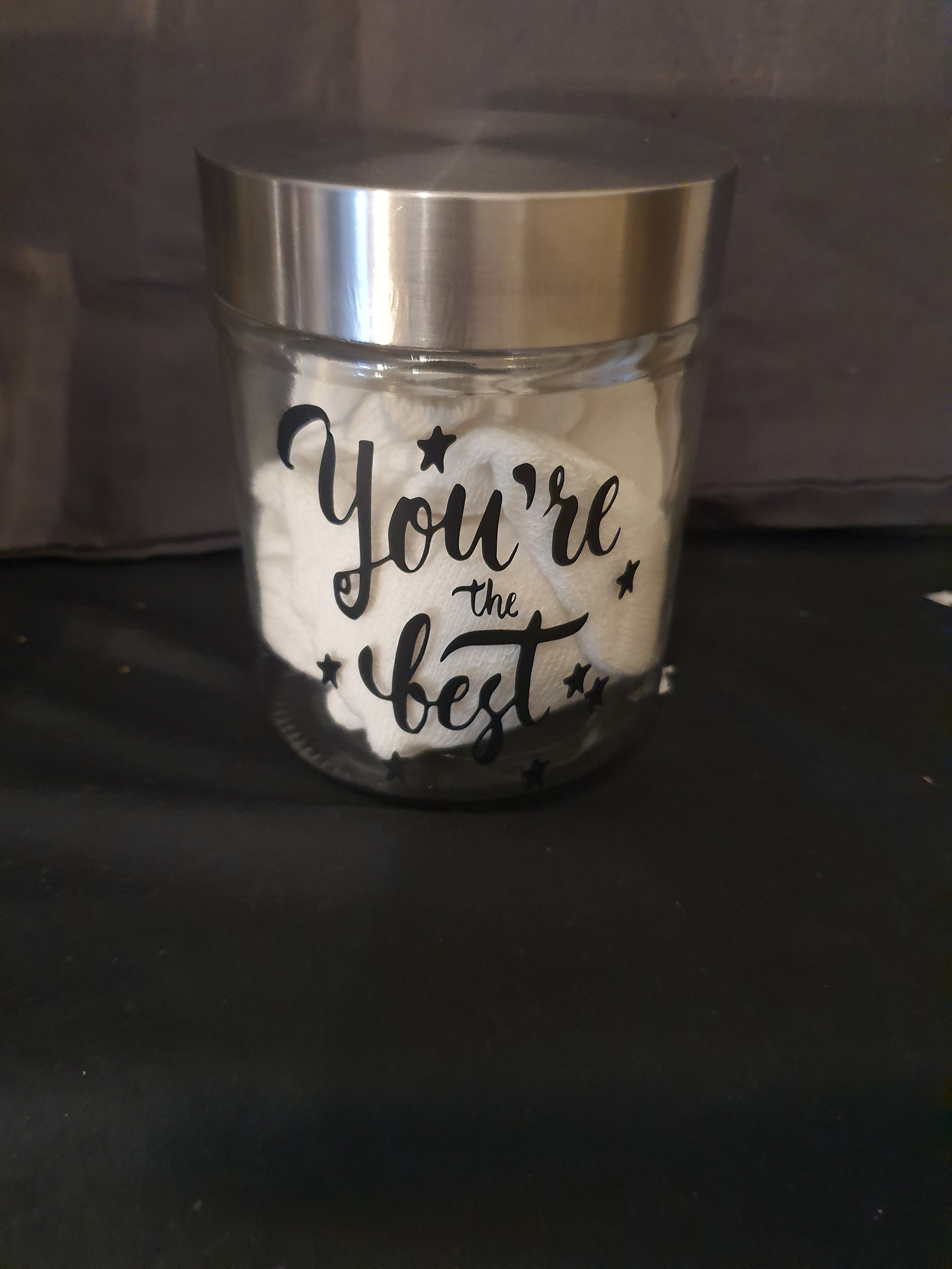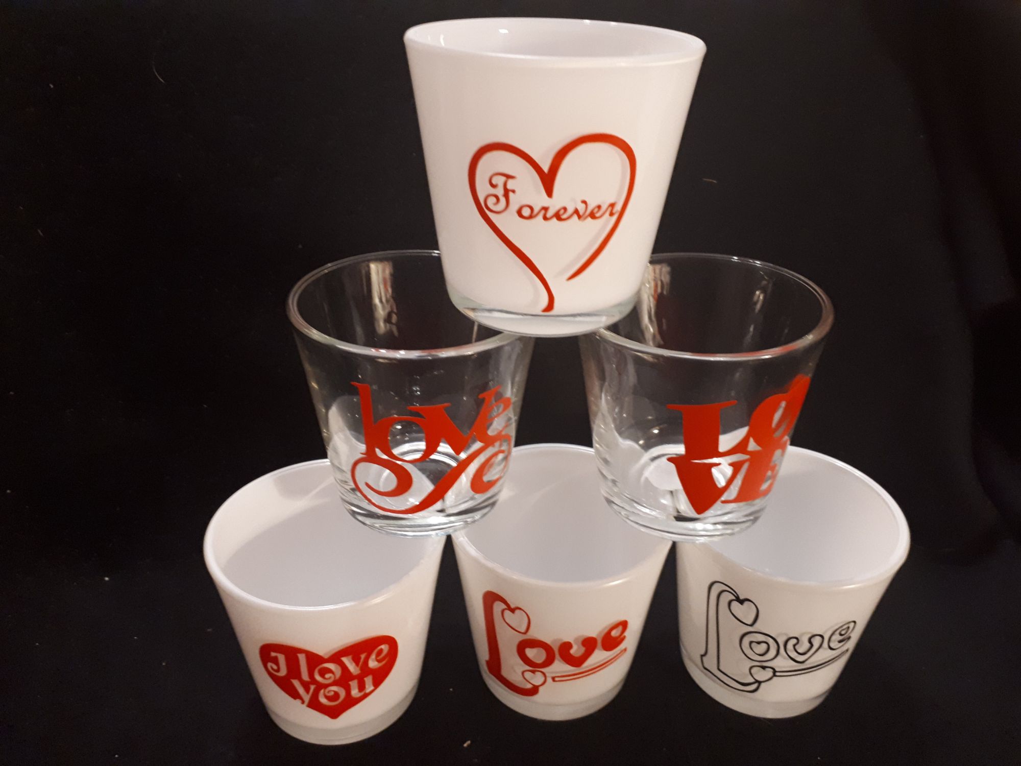 Ik ontwerp en maak decoratiestickers, tekstborden, ets namen in glazen en borduur namen op handdoeken.