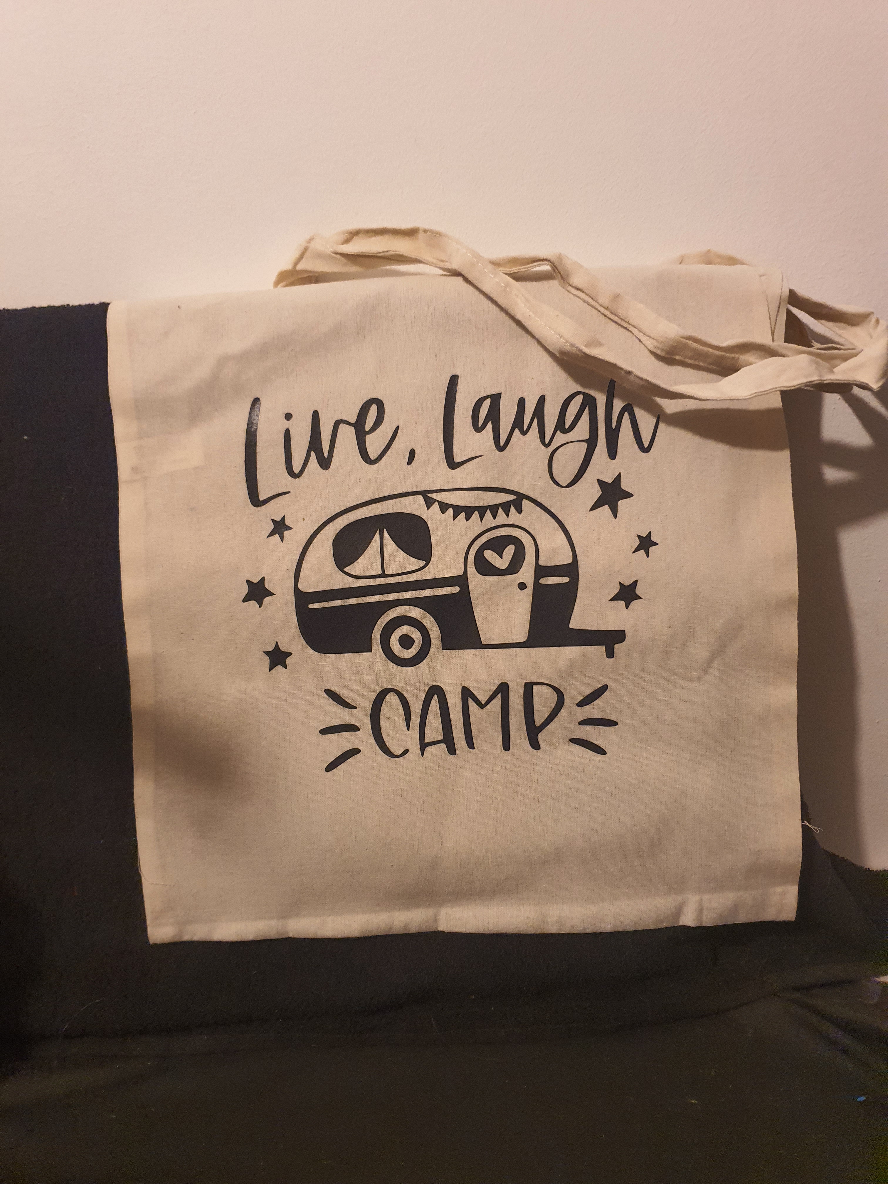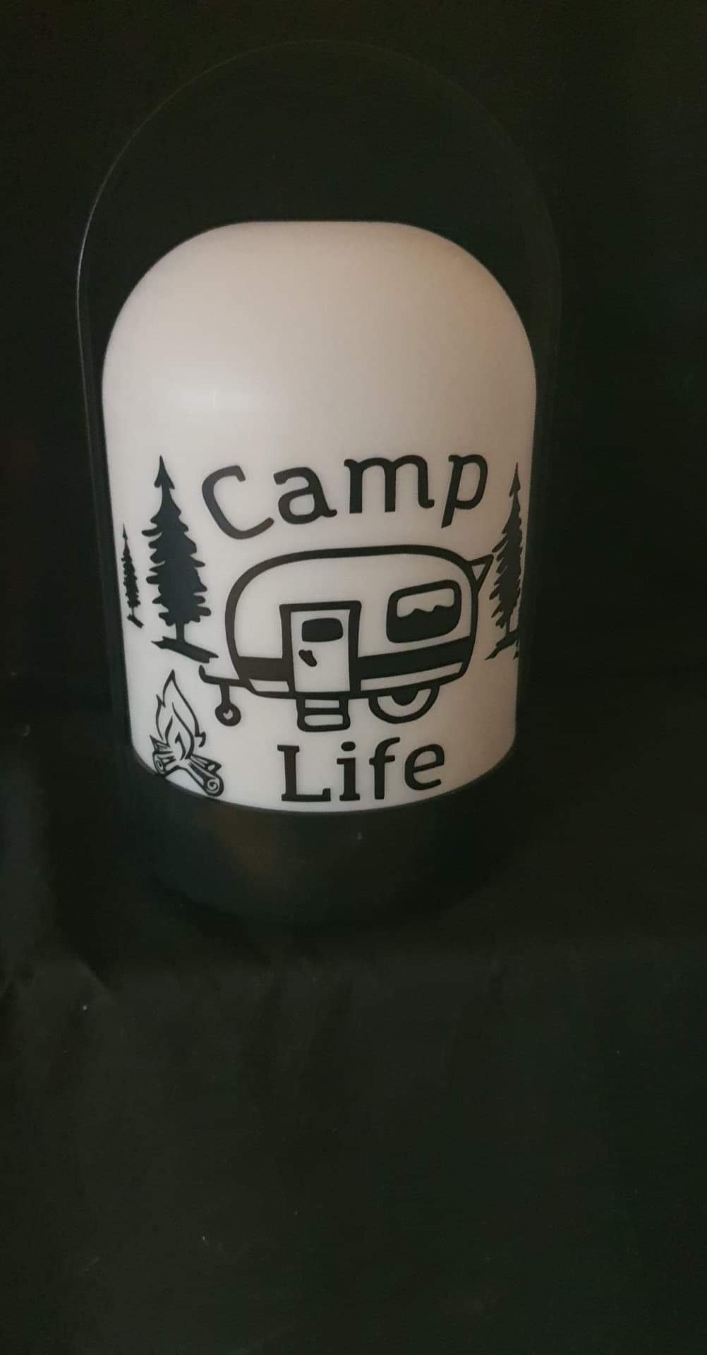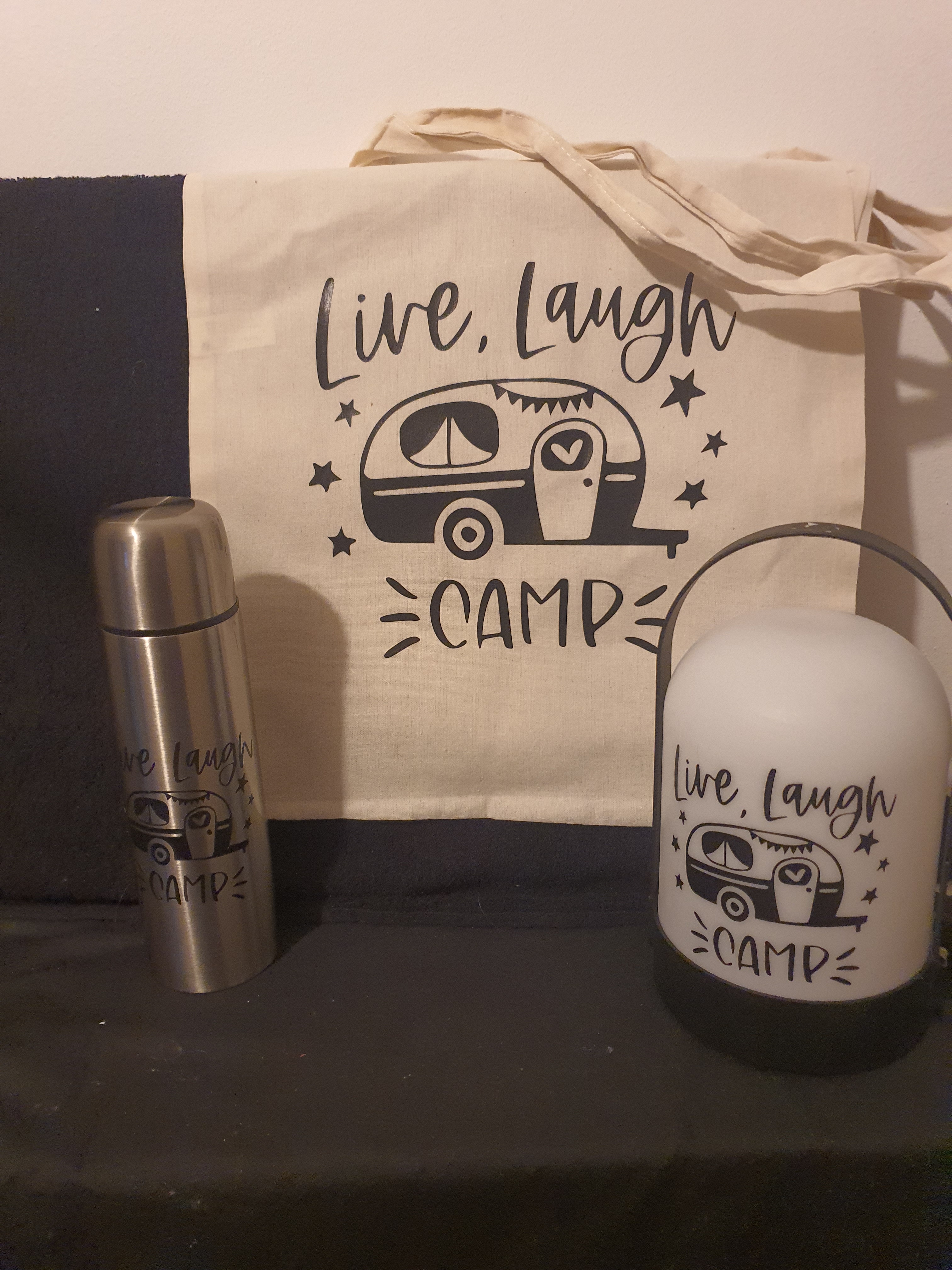 Leuk om te geven aan iemand die een caravan heeft , of graag kampeert. Andere afbeeldingen en teksten kunnen ook, maar het kan bijv. ook op een emmer of snoeppot.