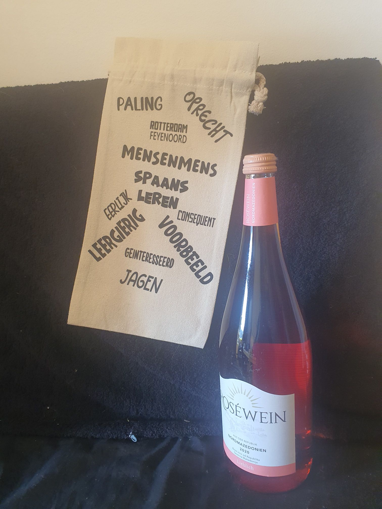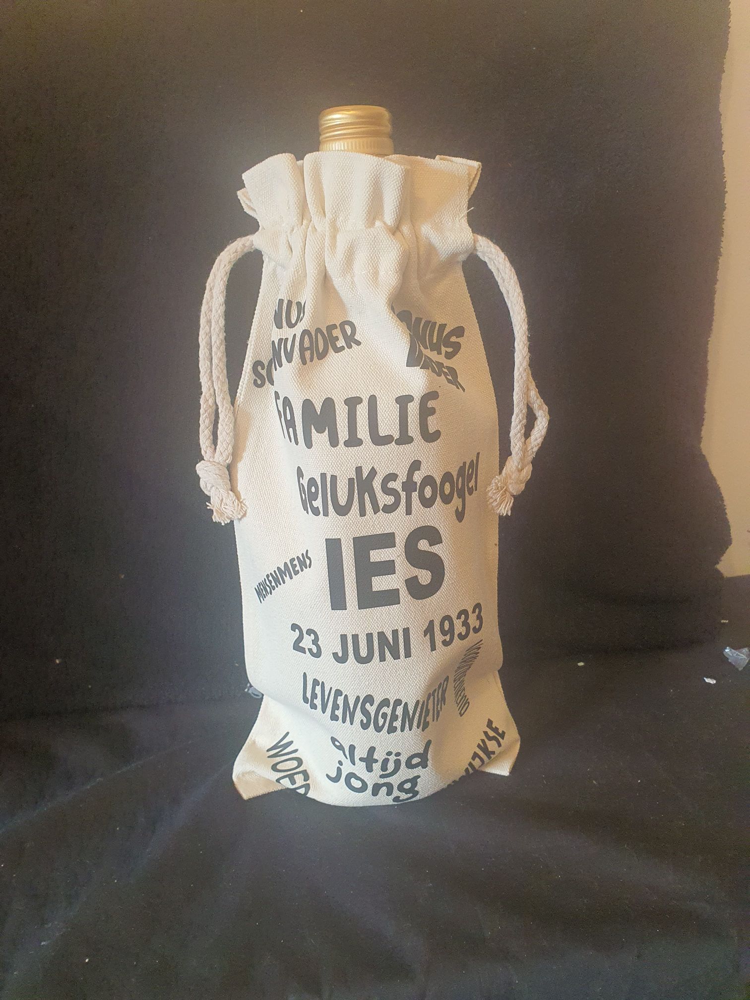 Een blijvend cadeau !!Een fles wijn geven op een andere manier. Het kan met een tekst of met allemaal woorden die op iemand van toepassing zijn.