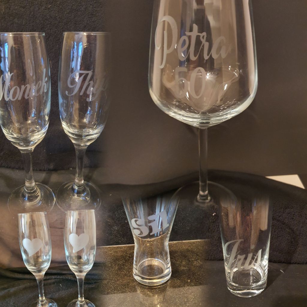 Glazen Etsen is leuk om te doen. Wij werken alleen met de glazen die wij aanschaffen, omdat het ets niet op alle glazen pakt.