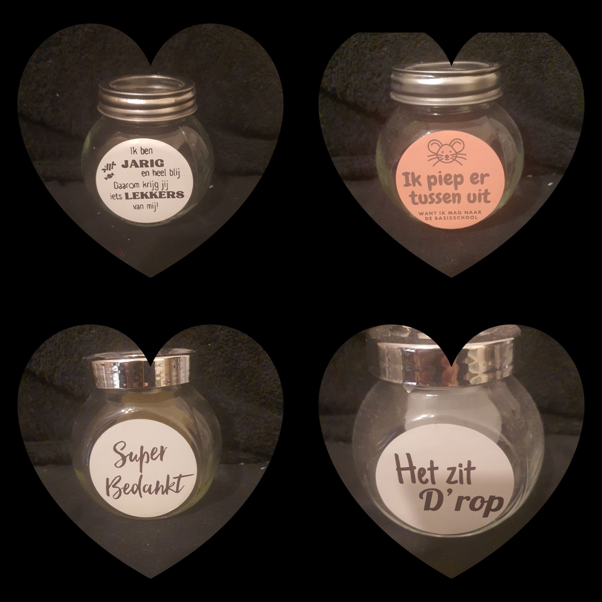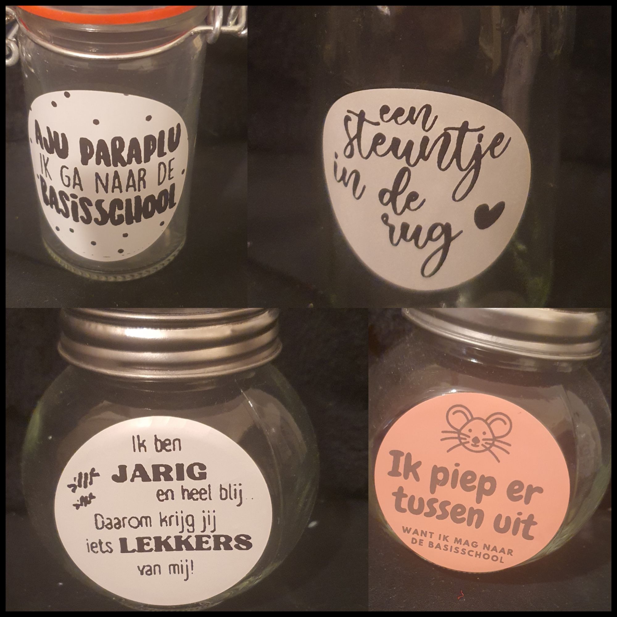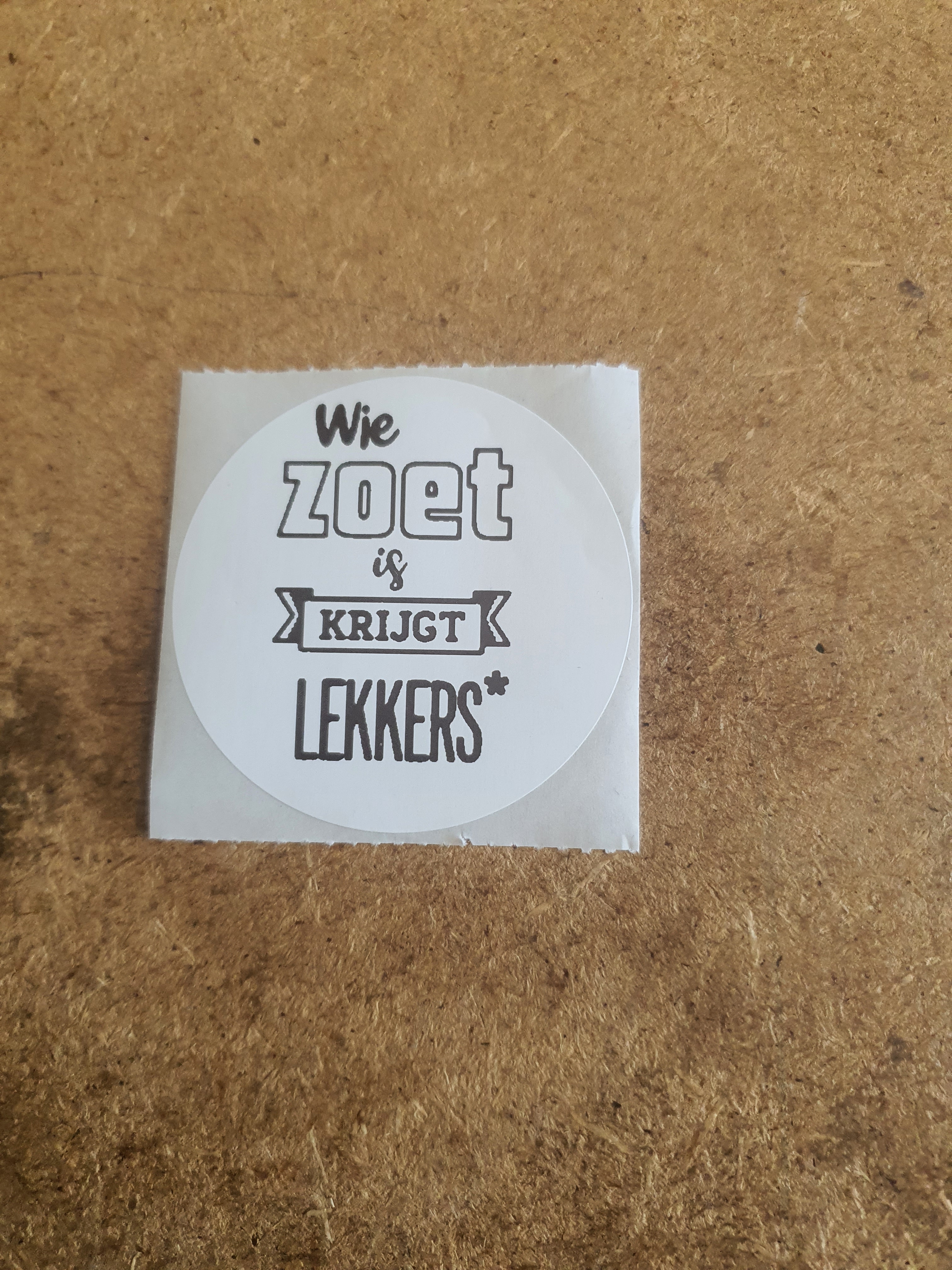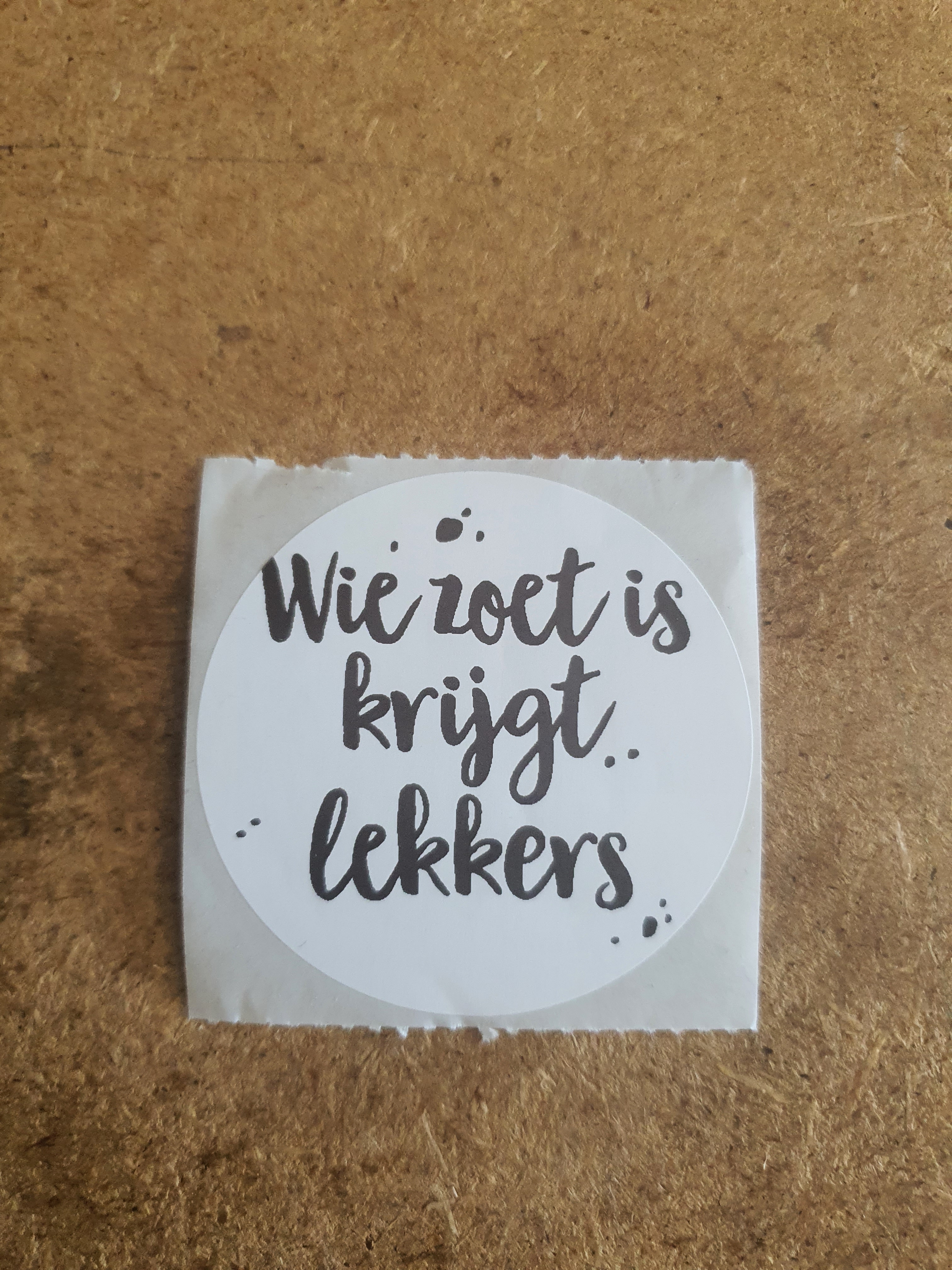 Leuk op kleine potjes en flesjes. Deze stickers maken een traktatie zakje helemaal af. Natuurlijk kan een zelfbedachte tekst ook.