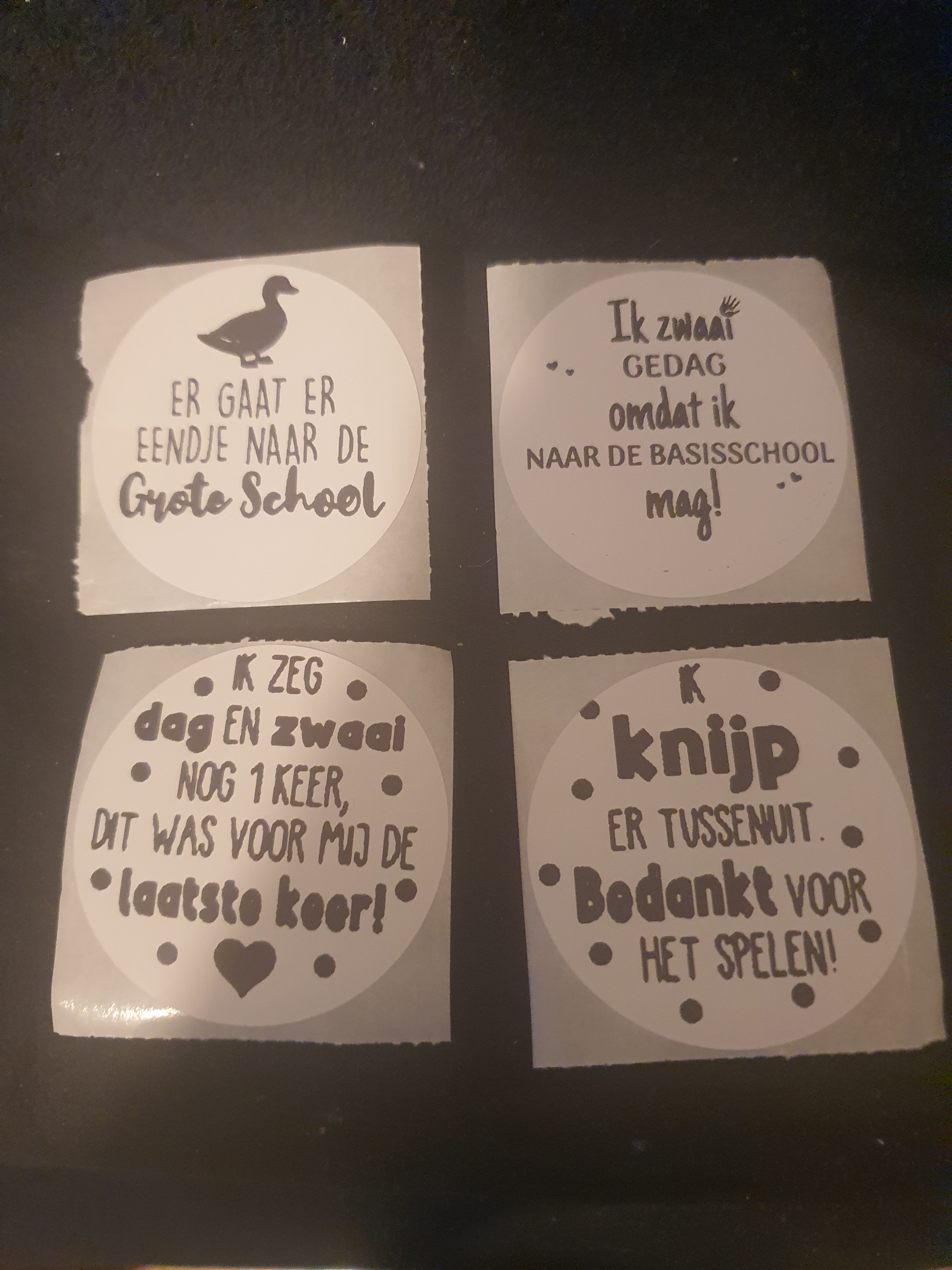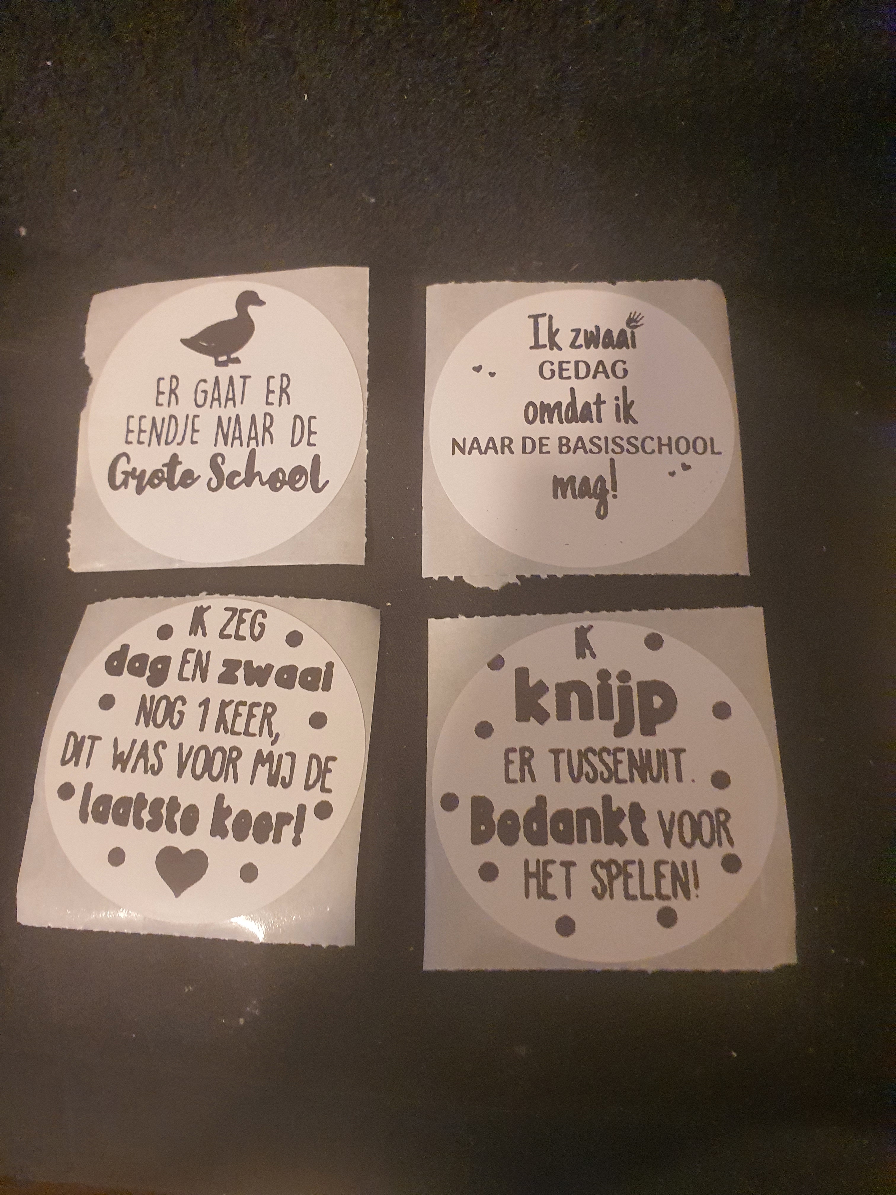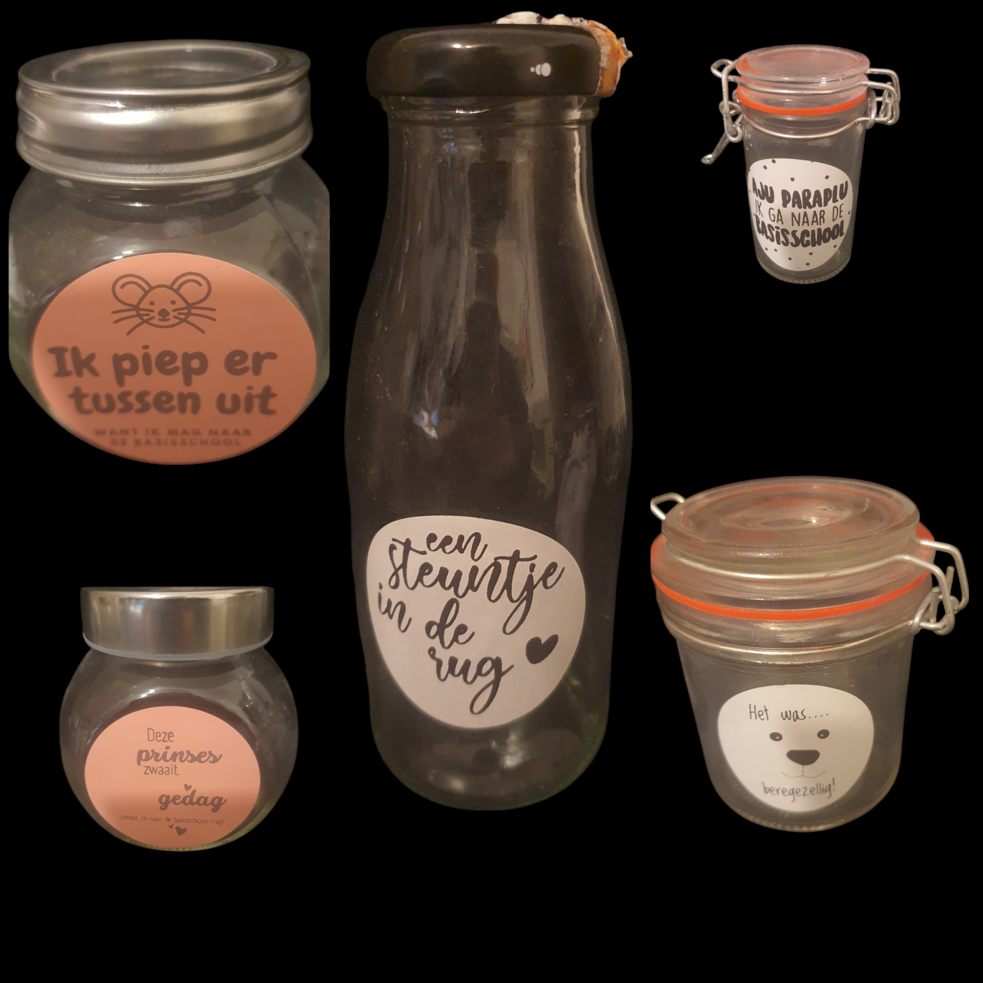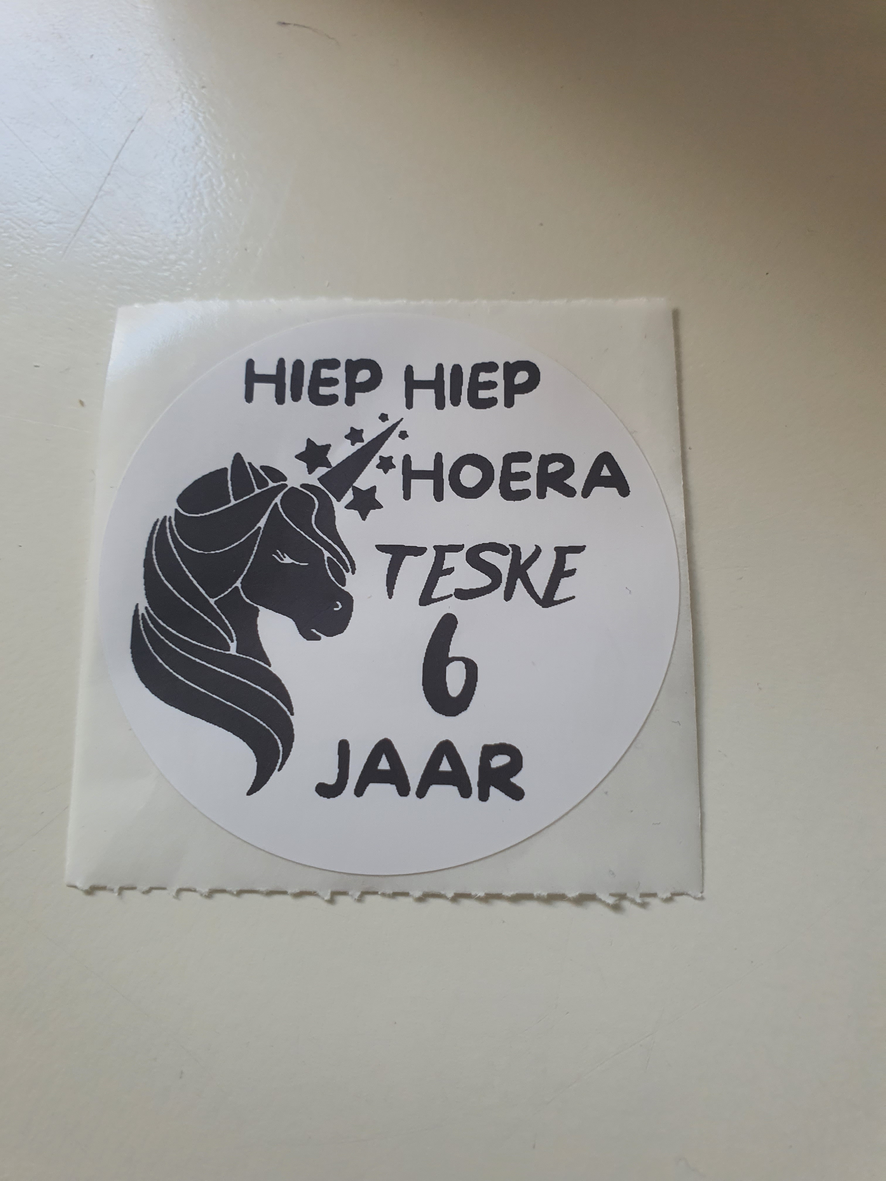 Leuk op kleine potjes en flesjes. Deze stickers maken een traktatie zakje helemaal af. Natuurlijk kan een zelfbedachte tekst ook.